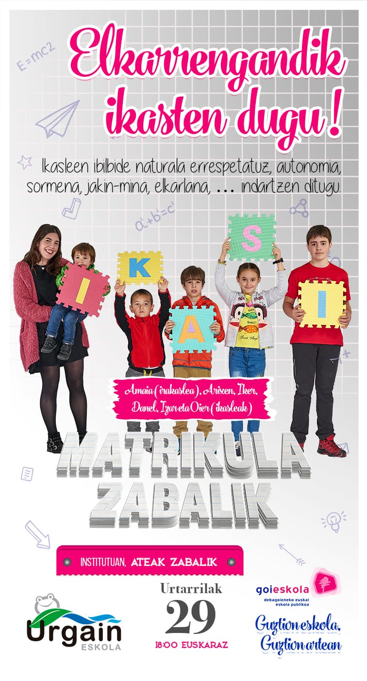 Estamos muy satisfechos con un trabajo en el que hemos querido mostrar los valores que definen las escuelas que forman parte de Goieskola: escuela pública y de calidad, participativa e inclusiva, proyecto multilingüe, cercana al pueblo, respetuosa con el medio ambiente y centrada en el desarrollo integral del niño.