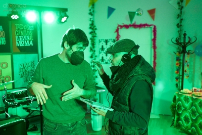 El fiestón es la primera experiencia de Aguinagalde como director tras una amplia carrera como actor en cine, teatro y televisión. “Es una historia a la que venía dándole vueltas en la cabeza. Hace unos meses trabajé a las órdenes de Xabi Vitoria en su cortometraje El carné, donde coincidí también con mis compañeros, y sin embargo amigos, Iñigo Salinero y Lander Otaola, la química fue muy buena y decidí retomar la idea que tenía, escribí el guion, se lo enseñé a Xabi y me dijo: ‘Tenemos que rodar este corto ya’. Le contesté: ‘Pero sólo si lo dirigimos entre los dos’. ¡Y aquí estamos! He aprendido muchísimo, hemos contado con un equipazo inmejorable y siempre le estaré agradecido a Xabi por confiar en mi locura desde el primer minuto. Espero que sea el principio de una larga colaboración”, explica el actor gasteiztarra sobre el proceso. “A los dos nos encanta la comedia y la reivindicamos, así que ha sido una gran experiencia y un placer trabajar de nuevo con Gorka”, apunta Vitoria, codirector de El fiestón.